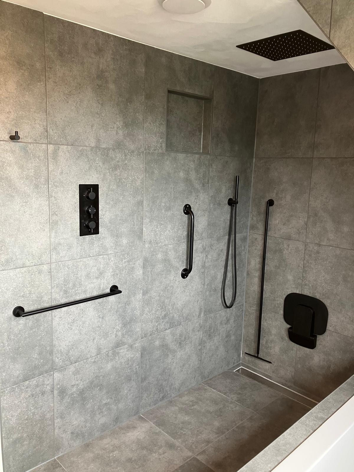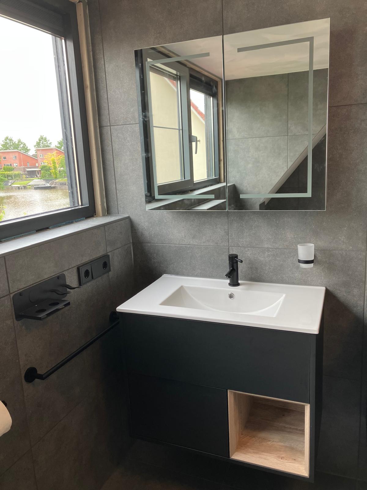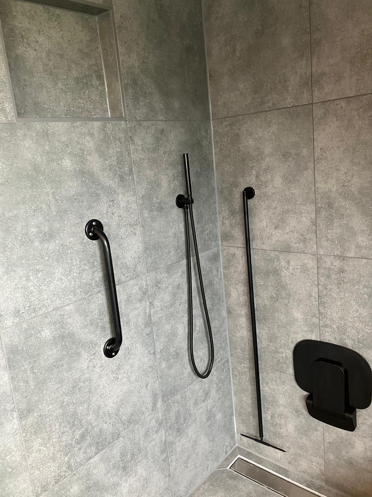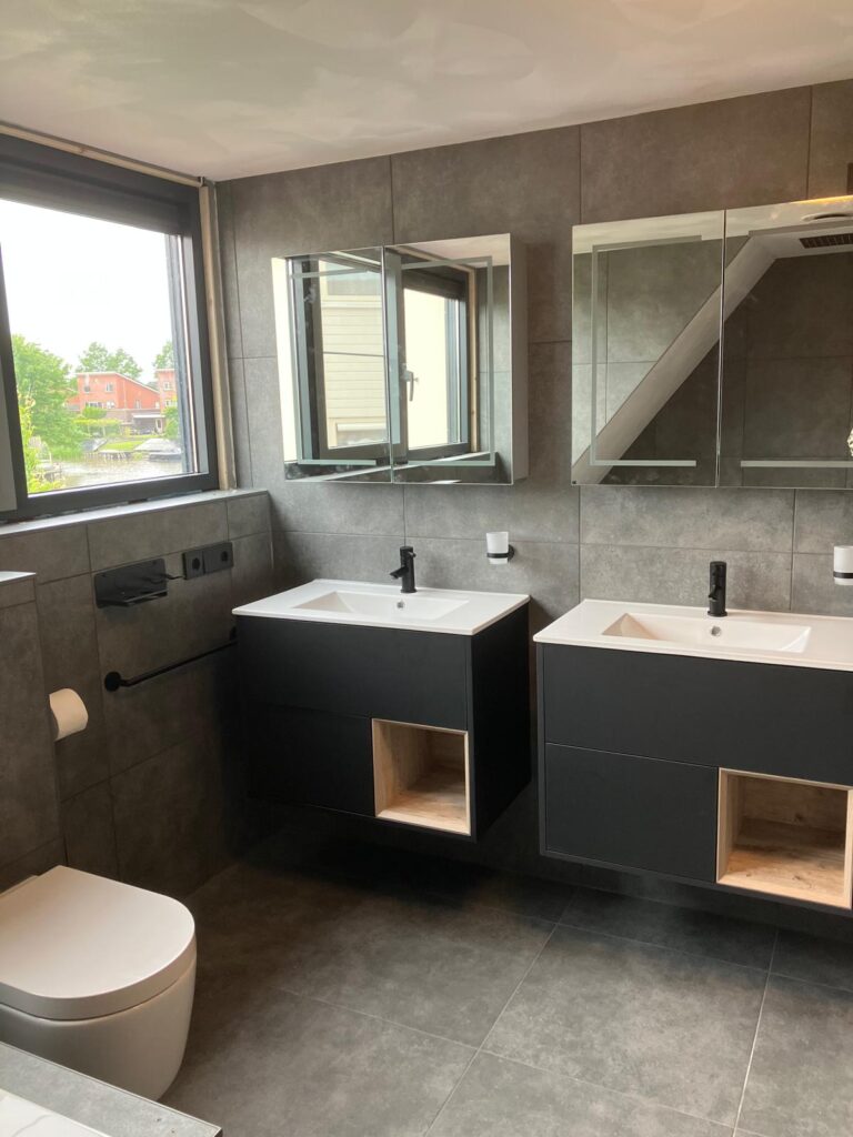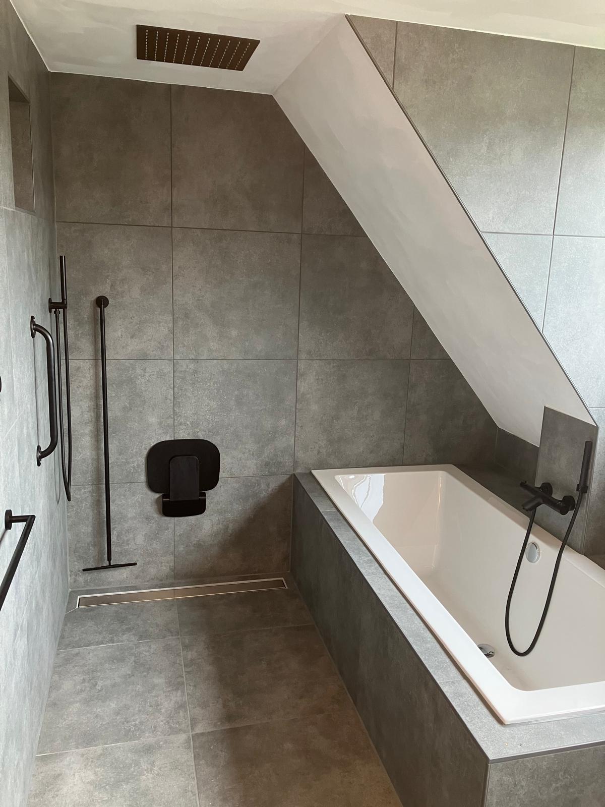 Deze frisse, eigentijdse badkamer is onlangs opgeleverd. Achter het strakke ontwerp schuilen subtiele aanpassingen die zorgen voor extra comfort en toegankelijkheid, zonder dat dit ten koste gaat van de uitstraling.
