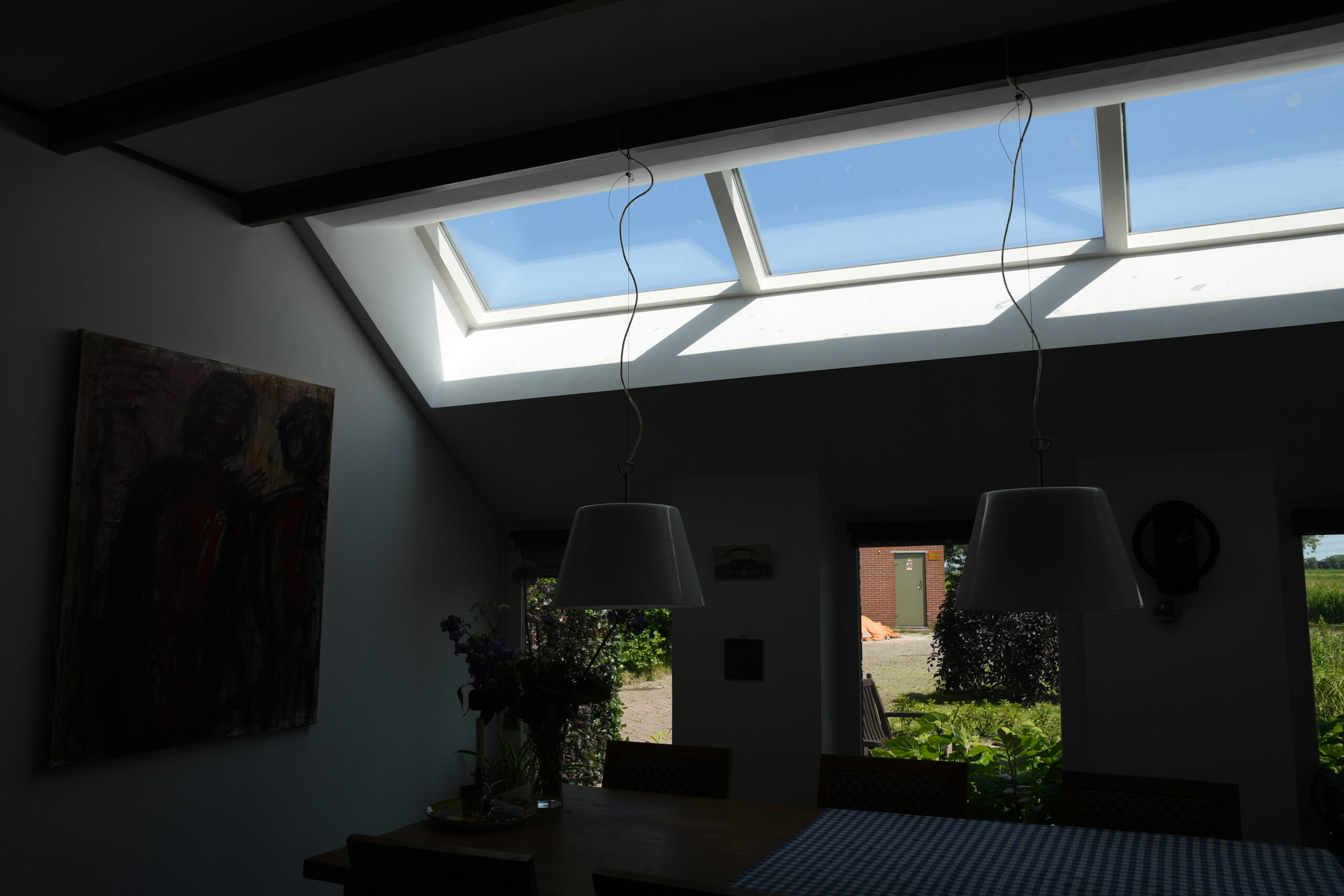 Bij deze verbouwing gaven we de boerderij een frisse, eigentijdse indeling. Een opvallend daklicht zorgt voor een prachtige lichtinval en benadrukt de ruimtelijkheid van het interieur — een moderne toevoeging in harmonie met het oorspronkelijke karakter.